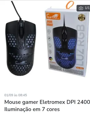 Mouse gamer Eletromex DPI 2400 Iluminação em 7 cores